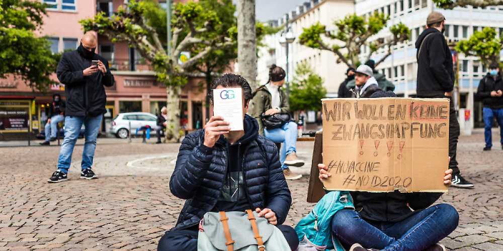 Als im März die bekannten Infektionen mit dem Sars-CoV2-Virus sprunghaft anstiegen, wurde das öffentliche Leben immer weiter heruntergefahren. Die Maßnahmen gegen die Pandemie führten unweigerlich zu Einschränkungen der Grundrechte. Am 22. März beschlossen Bundes- und Landesregierungen ein Kontaktverbot, das Ansammlungen von mehr als zwei nicht im selben Haushalt lebenden Personen untersagte. Die Versammlungsfreiheit wurde somit de facto ausgesetzt. In dieser ersten Phase der Pandemie initiierten eher links gerichtete Künstler*innen am 28. März die erste sogenannte Hygienedemonstration unter dem Motto „Nicht ohne uns“ in Berlin mit rund 150 Teilnehmenden.